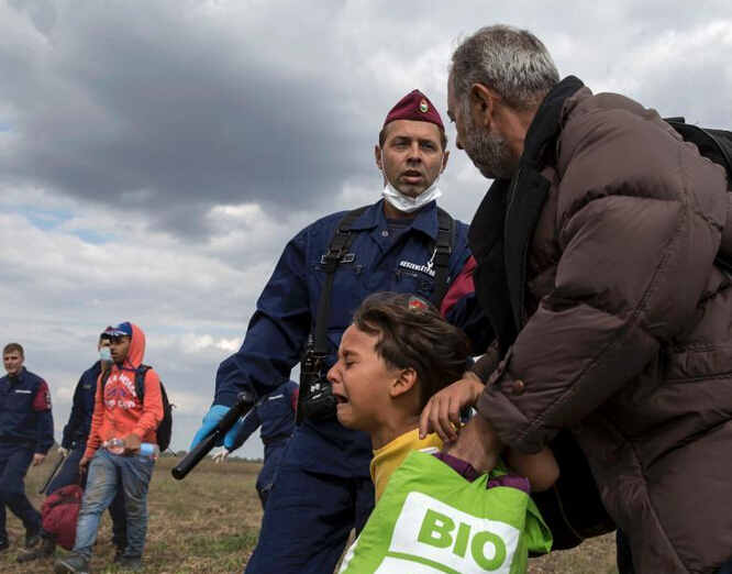 警察追捕非法移民 女记者故意绊倒难民父子俩